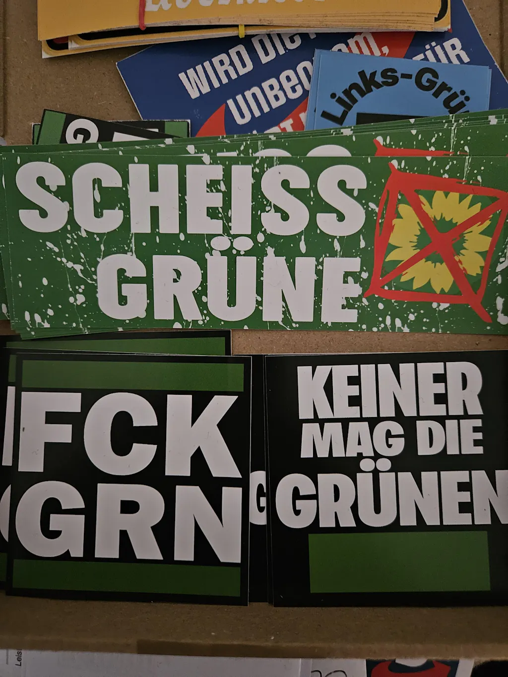 FUCK GRN, FCK GRÜNE, SCHEISS GRÜNE, GEGEN GRÜN